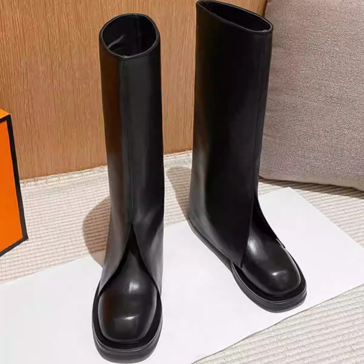 牛皮版~厚底裤管靴女炸街2025秋冬高筒靴女直筒不过膝骑士靴女子