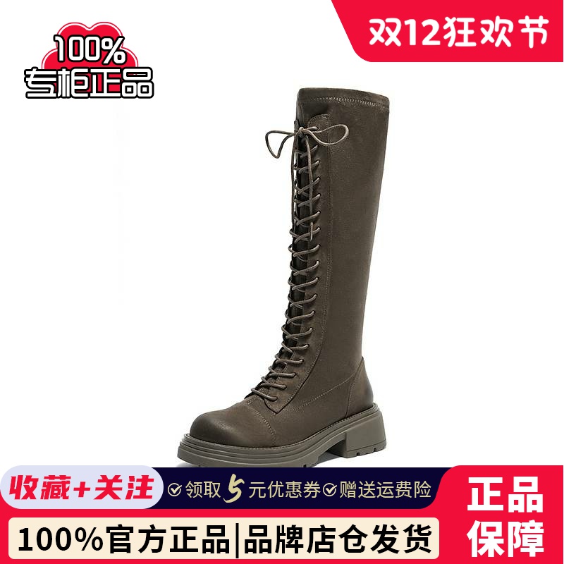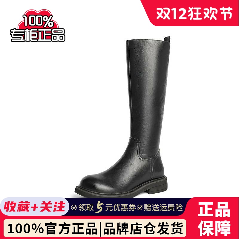 专柜正品百思图2025冬季商场新款高筒骑士靴女子加绒长靴F3018DG5