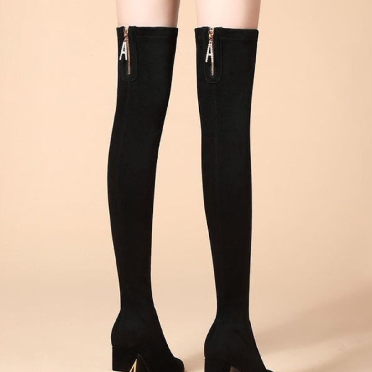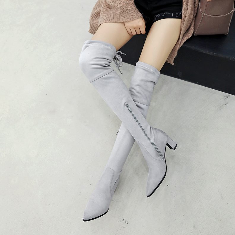 过膝秋冬棕韩版色女子长筒靴弹力鞋季大小码瘦高跟粗黑灰新款绒面
