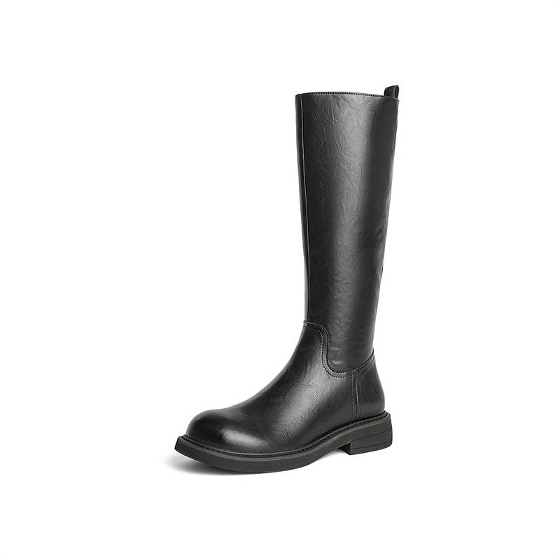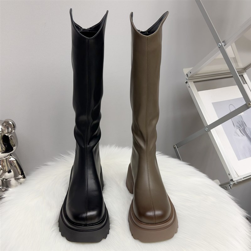 美拉德2025年冬季长筒靴女早秋后拉链厚底粗腿显瘦加绒高筒靴女子