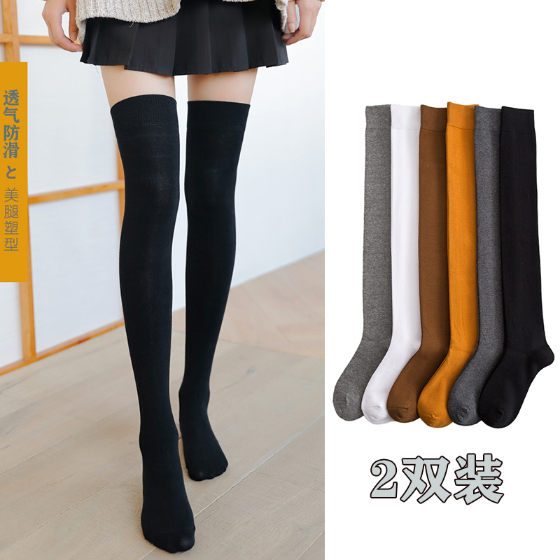 纯色过膝袜女秋冬精梳棉长筒靴袜日韩系学院街头女子校生美腿长袜