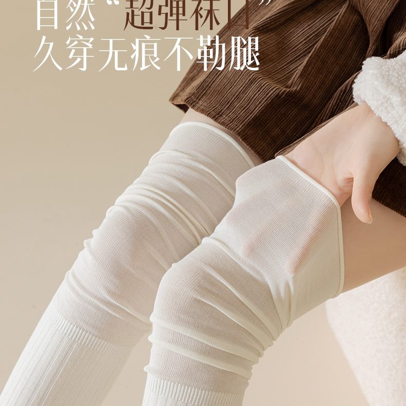 小腿袜女辣妹膝盖过膝长筒袜秋冬甜辣纯色米色日系长靴袜防寒女子