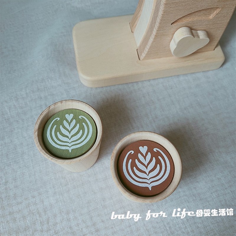 原木椴木榉木咖啡机男孩女孩过家家厨房玩具料理机儿童房拍照道具