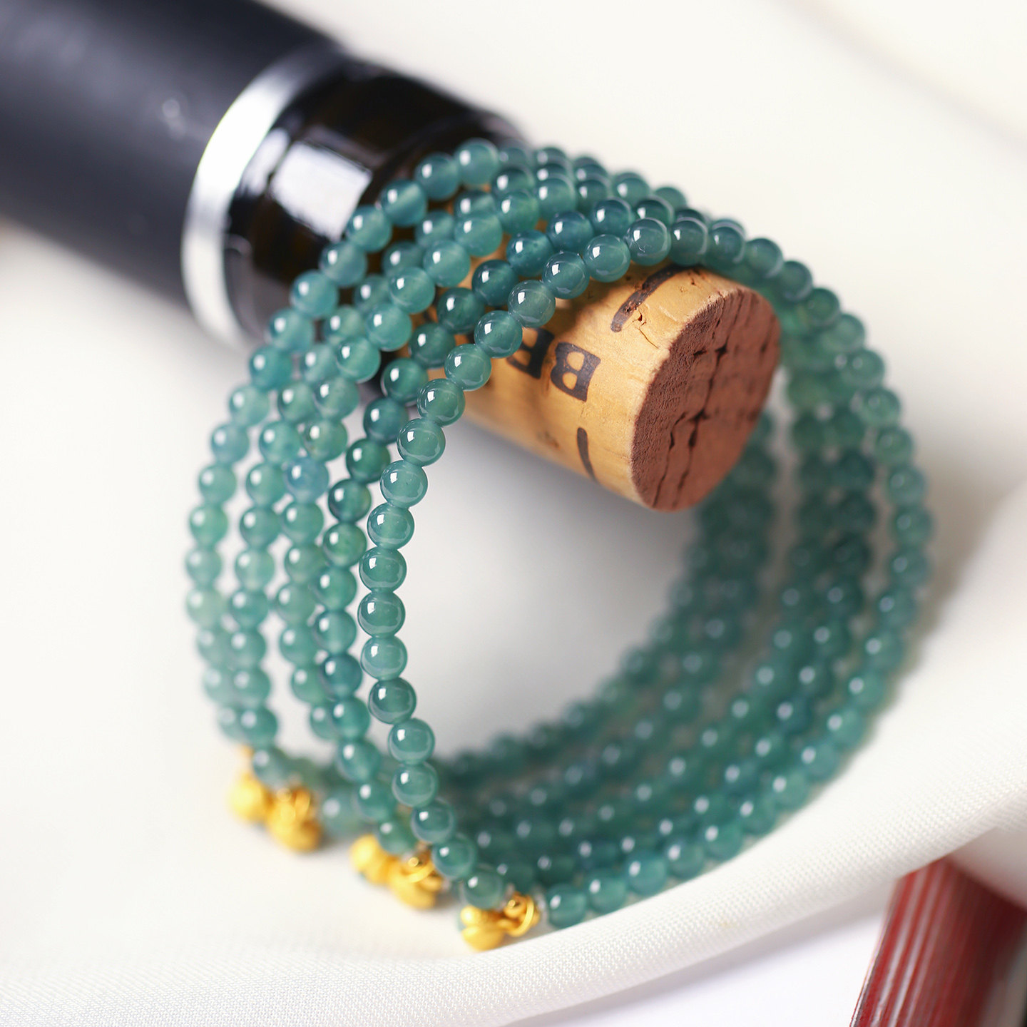 天然A货翡翠危料蓝水翡翠圆珠搭配纯银配件手链 女款翡翠手串饰品