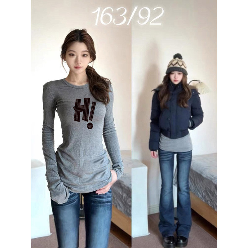 2024秋新款中长款长袖T恤女修身纯棉欧货百搭打底衫紧身上衣潮