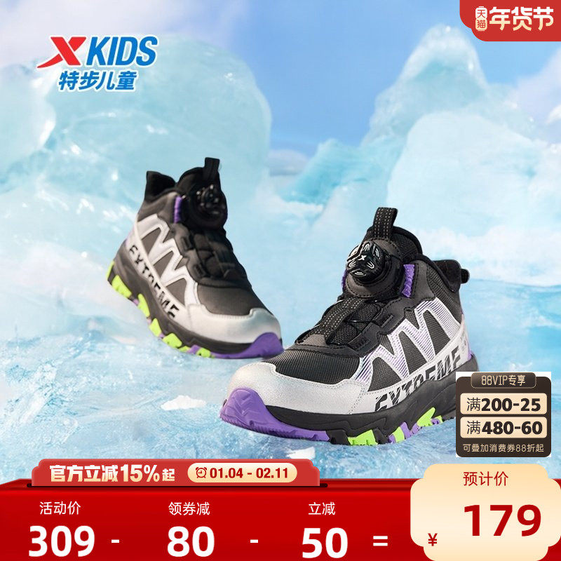 特步童鞋冬季新款男童加绒保暖休闲棉鞋儿童运动防滑二棉鞋运动鞋