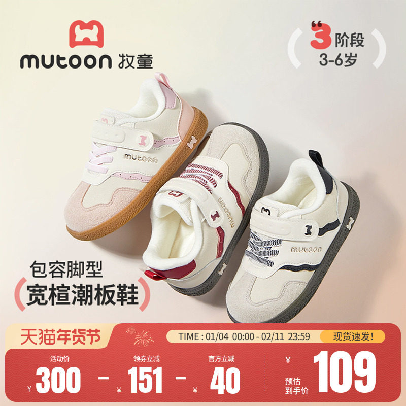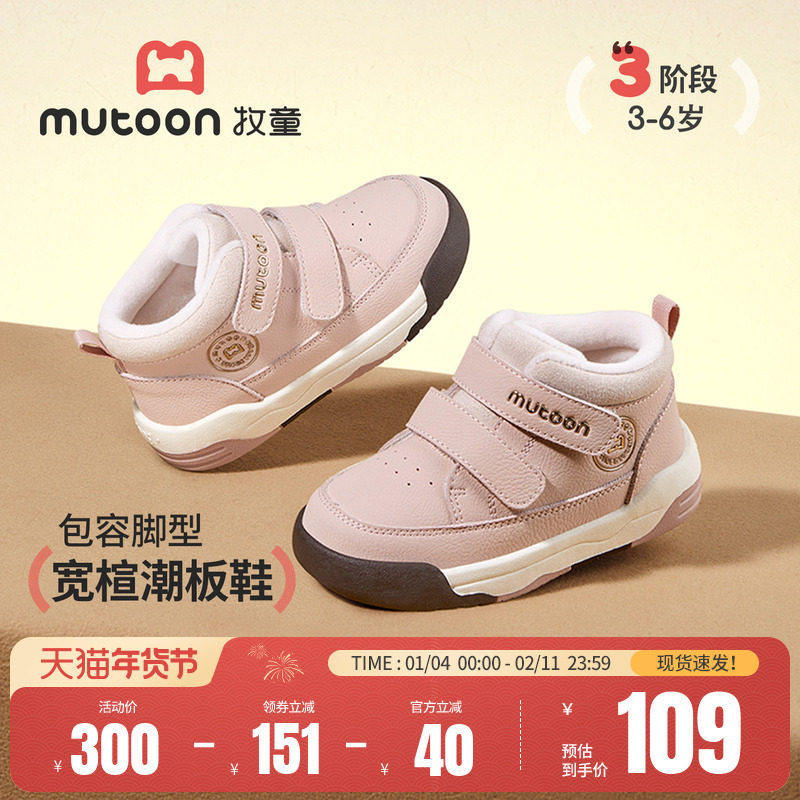 牧童儿童板鞋男童冬季轻便缓震小高帮童鞋加绒保暖女童鞋休闲棉鞋