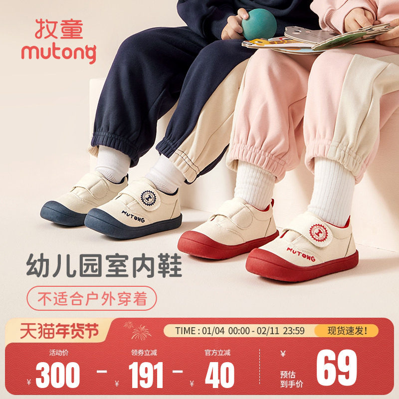 牧童儿童板鞋春秋款男童透气软底休闲鞋轻便女童鞋幼儿园室内鞋子