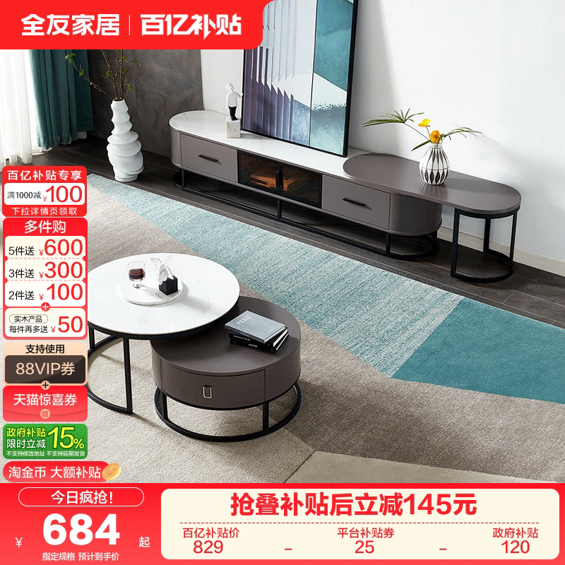 - 伸缩电视柜茶几组合