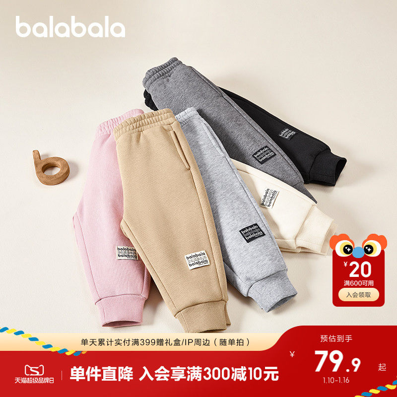 巴拉巴拉童装男童加绒长裤儿童裤子2025秋冬装女童运动休闲裤百搭
