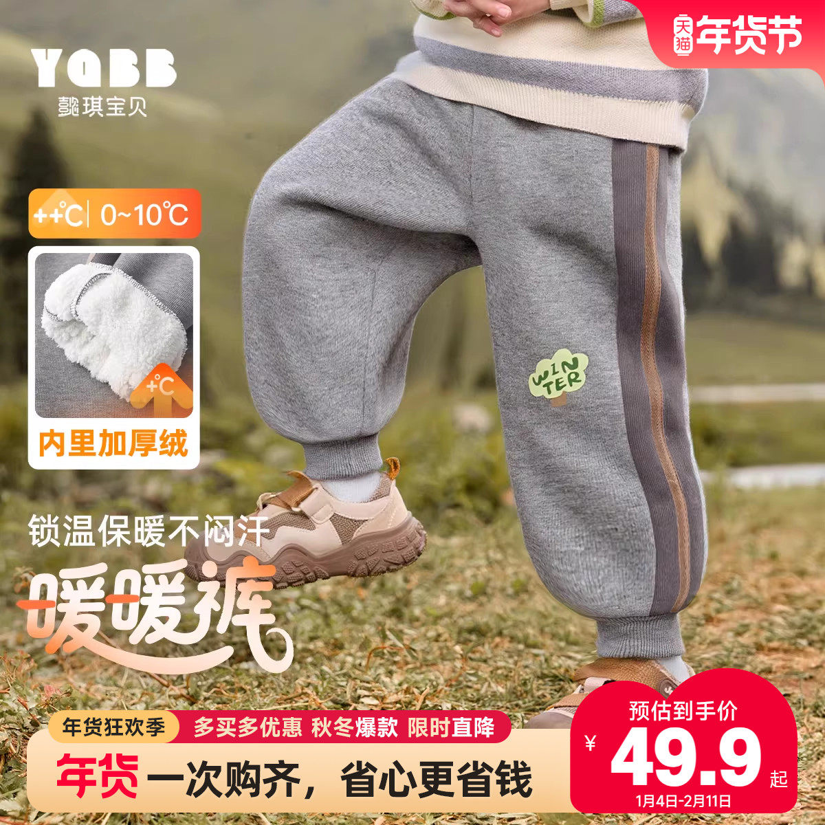 EBAER男童加绒裤子2025冬装新款百搭运动束脚裤休闲裤儿童加绒裤