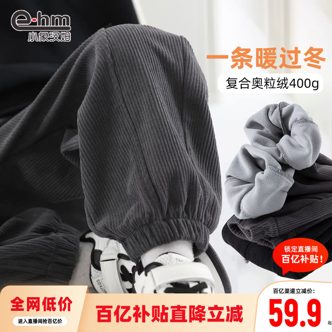 小象汉姆男童运动裤秋冬款儿童冬装加绒裤子宽松2025新款男孩大童