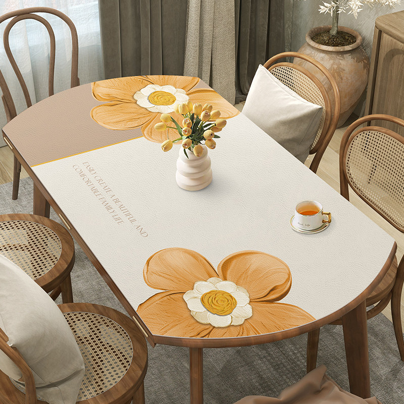 硅胶椭圆形桌垫防水防油防烫免洗可折叠弧形皮革圆桌桌布茶几台垫