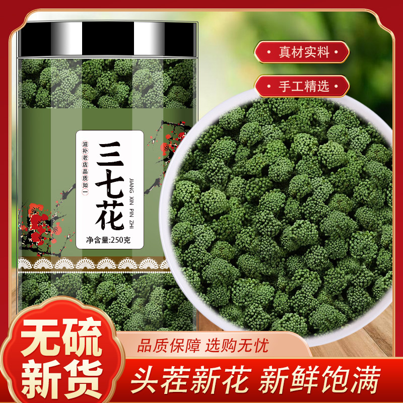 四年新三七花 绿色花朵 云南文山特级无柄三七花茶500g包装