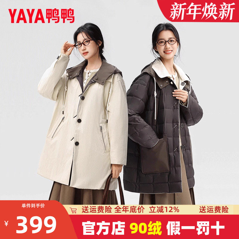 鸭鸭风衣羽绒女中长款2025秋冬新款英伦风冷淡系双面穿外套高级感