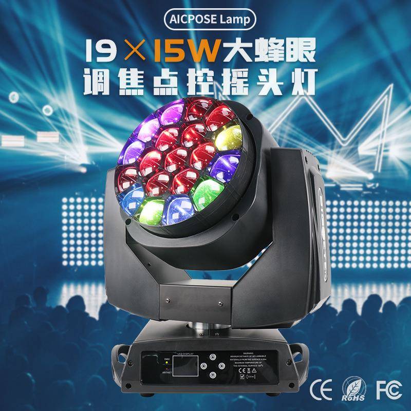 19颗调焦15W大蜂眼LED光束摇头灯婚庆酒吧舞台灯光四合一染色灯