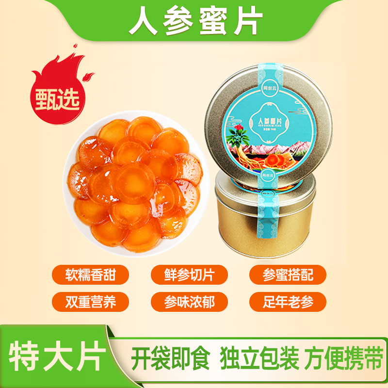 长白山人参蜜片即食新鲜正宗鲜参蜜片红参切片泡水正品官方旗舰店