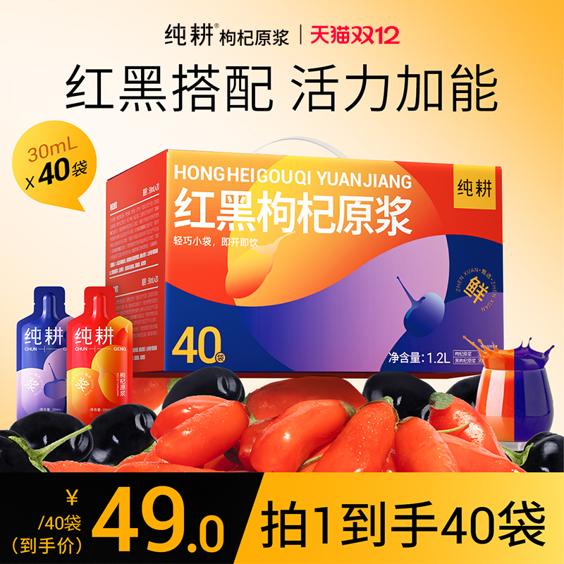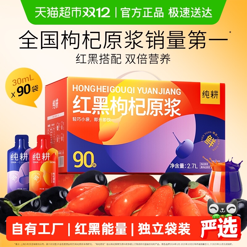 纯耕红黑鲜榨枸杞原浆1800ml健康礼盒宁夏青海鲜枸杞汁官方旗舰店