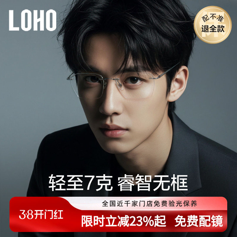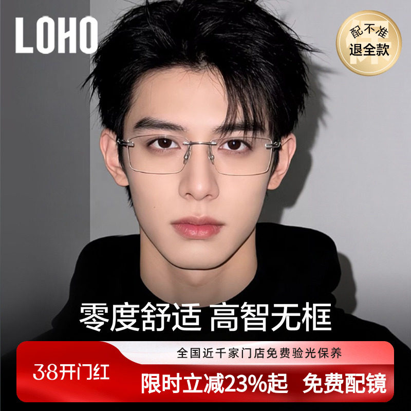 LOHO超轻纯钛无框眼镜近视男款度数可配防蓝光框镜架高级感痞帅