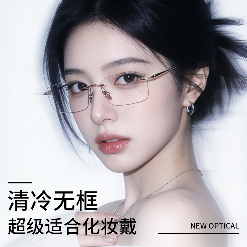 超轻纯钛无框眼镜女近视可配度数防蓝光御姐高级感纯欲金丝无边框
