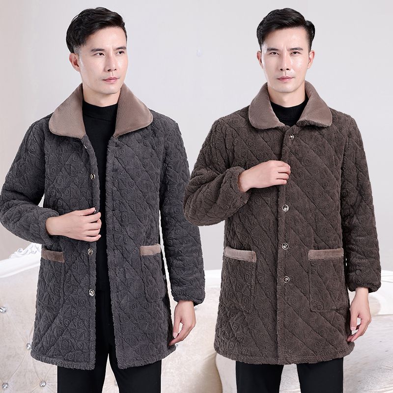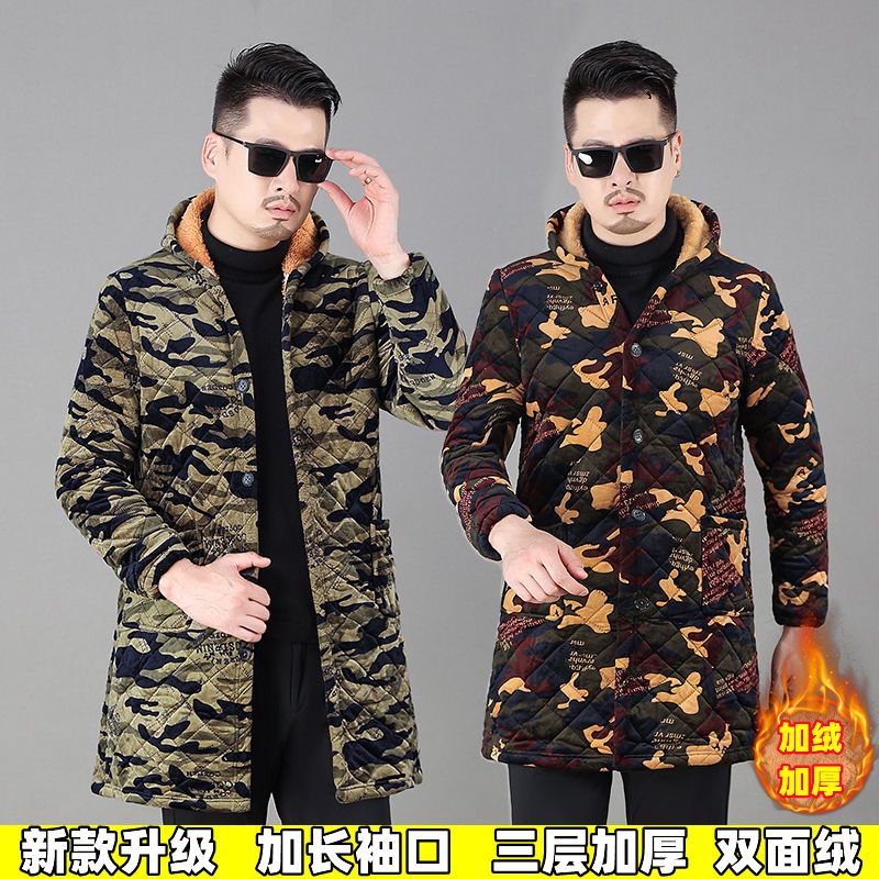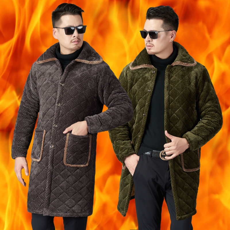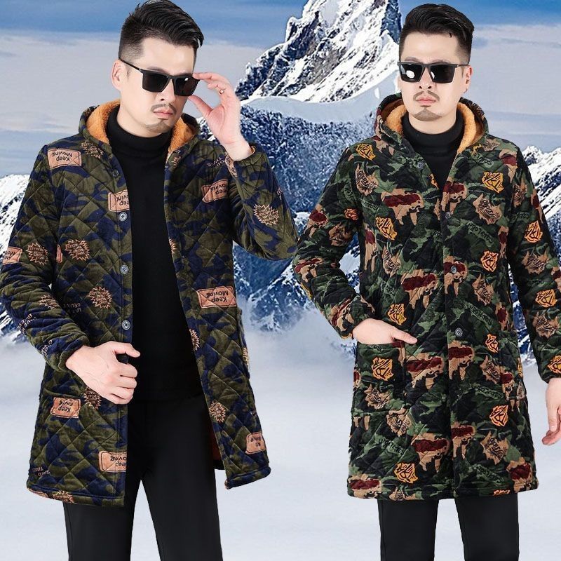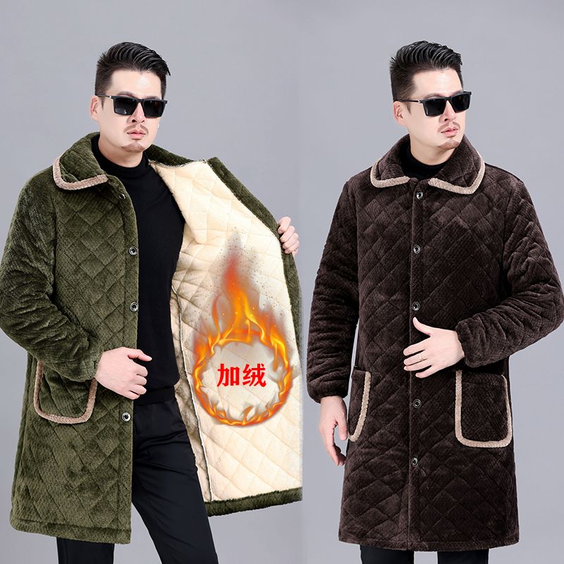 四川加厚男士罩衣冬季加绒中长款棉衣宽松大码棉服爸爸保暖绒棉袄
