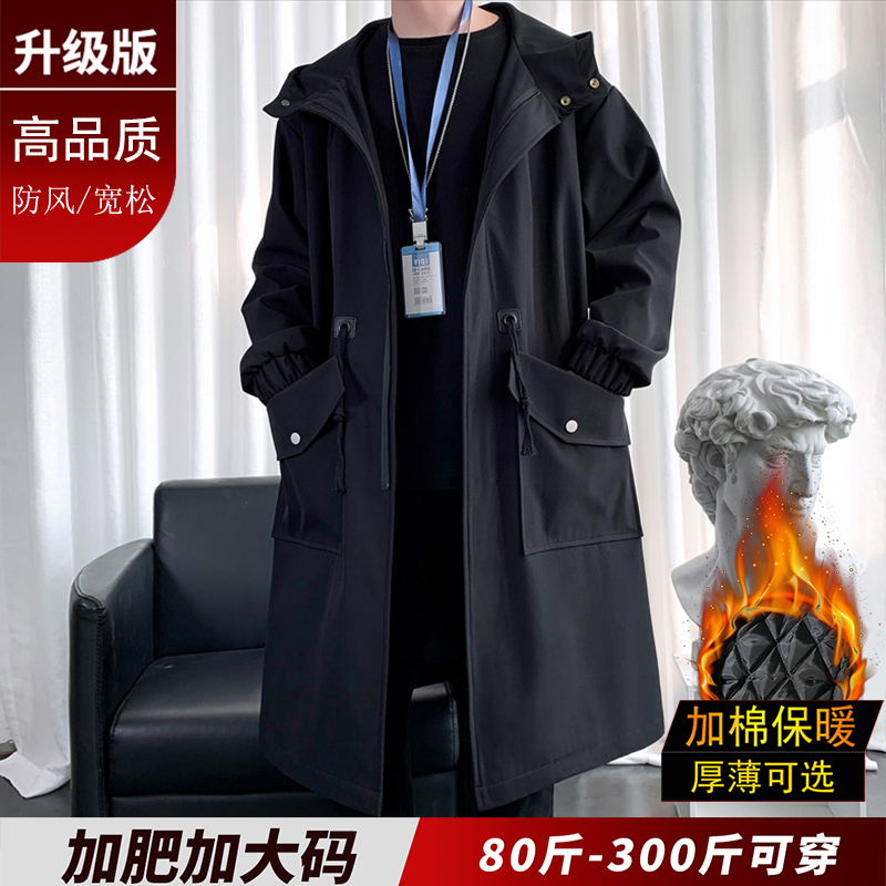 2025秋冬新款男士外套休闲宽松中长款风衣帅气潮加绒加厚棉服夹克
