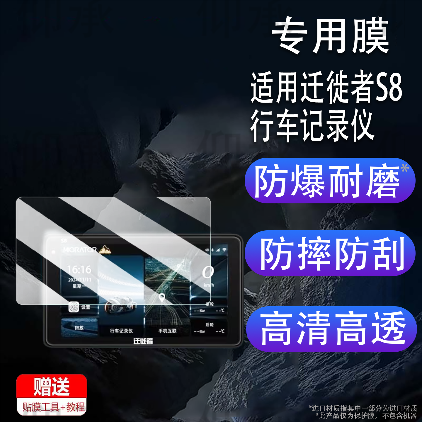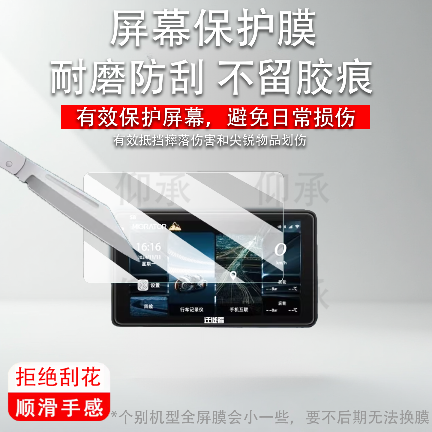 适用于迁徙者S8行车记录仪贴膜SE80智能投屏导航S10屏幕膜摩托车监测仪SE70机保护膜SE75非钢化mx6/x6高清