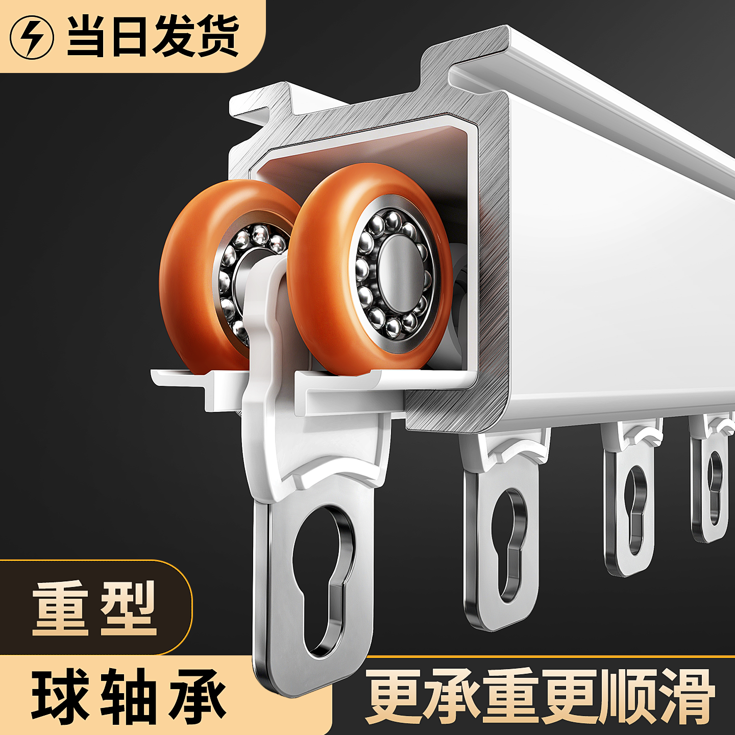轴承轮静音铝合金窗帘轨道滑轨滑轮顶装侧装导轨窗帘杆单轨双直轨
