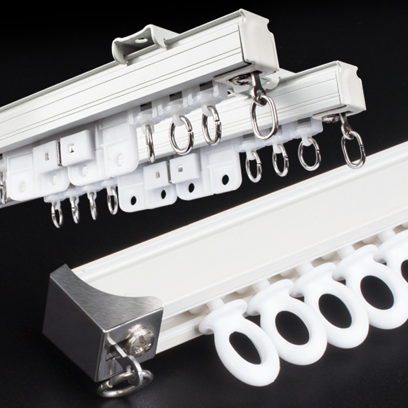 君启窗帘轨道铝合金静音滑轨导轨窗帘杆轴承滑轮道轨单双轨侧顶装