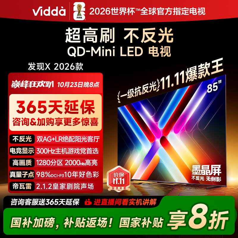 Vidda发现X 2026款 85英寸电视 墨晶屏QD-Mini LED海信 电视机122