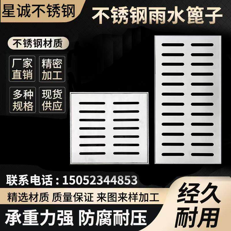 广佛304不锈钢井盖雨水篦子庭院装饰方形下水道地沟排水沟201盖板