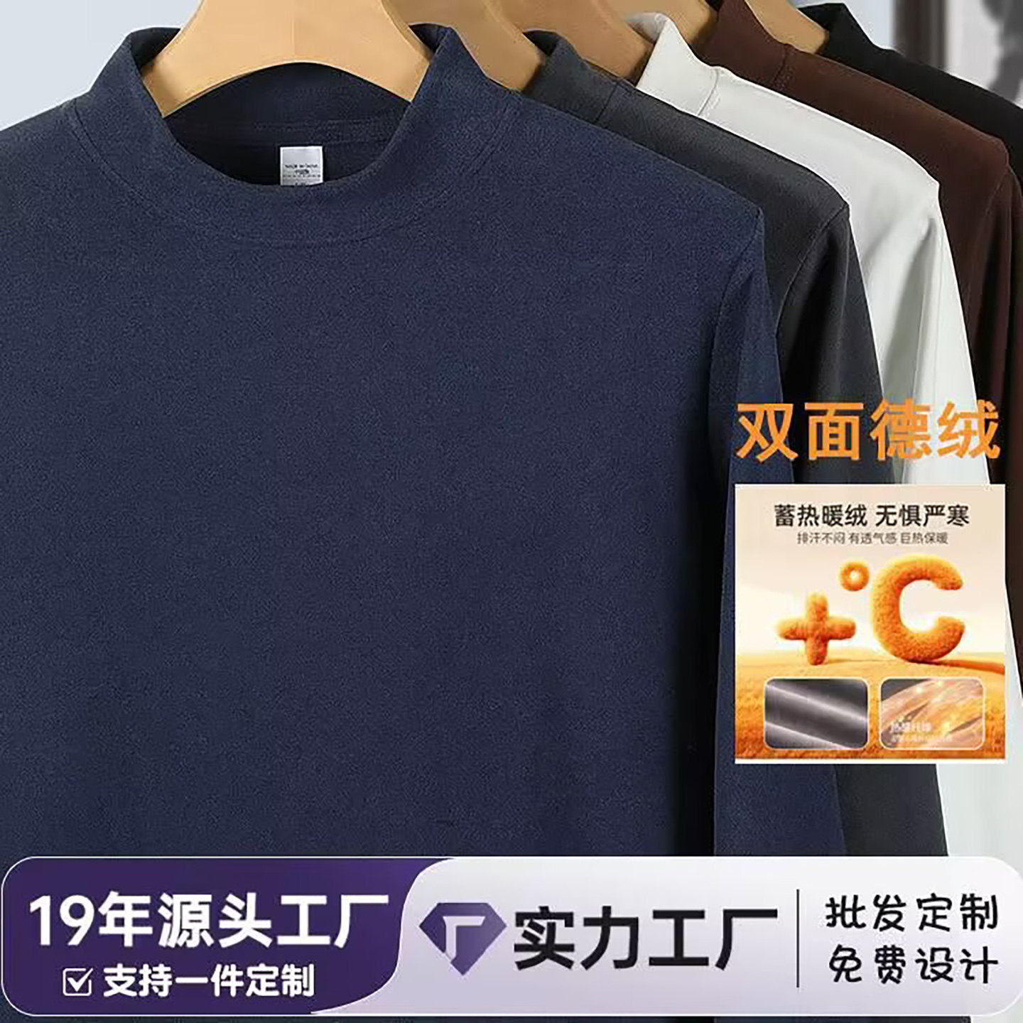 狼人精品男装店2025秋冬新款男士百搭打底衫半高领加绒长袖上衣