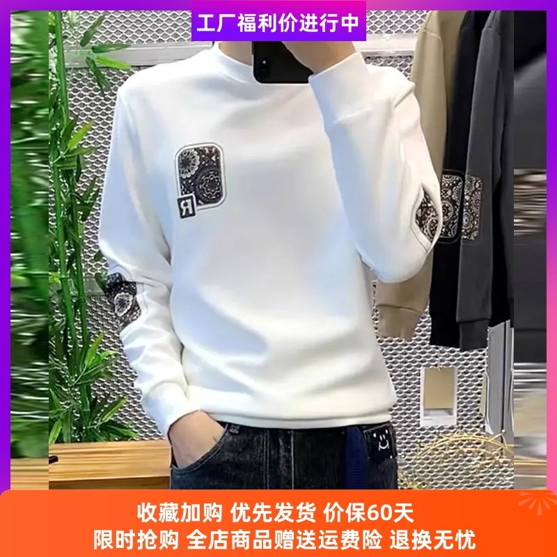 点击率精品男装店时尚刺绣男士修身半高领长袖秋冬季加绒加厚卫衣