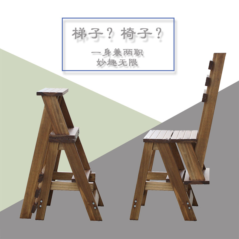 加厚实木家用梯子 室内楼梯椅 两用登高凳 三步折叠梯凳 创意木梯