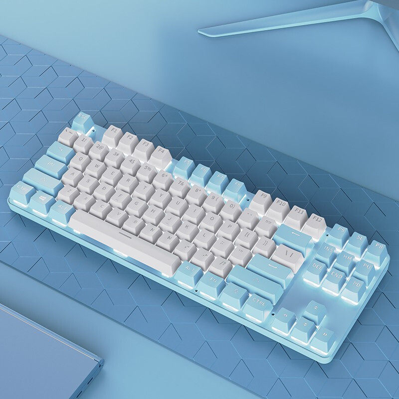 极速机械键盘有线电竞游戏外设y背光87键粉色蓝色可爱少女心发光