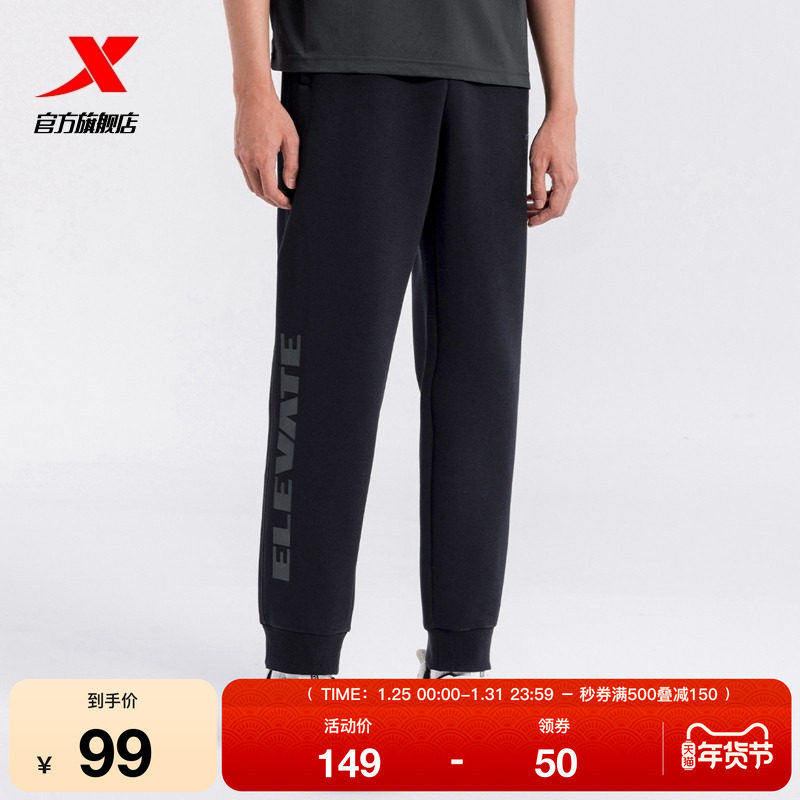 特步束脚裤男款春秋季印花运动裤针织长裤通勤健身裤子宽松休闲裤