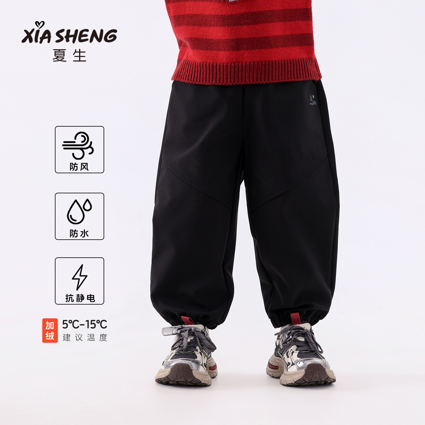 夏生 软软壳户外束脚裤 男女童加绒保暖抗静电休闲裤儿童冬装新品