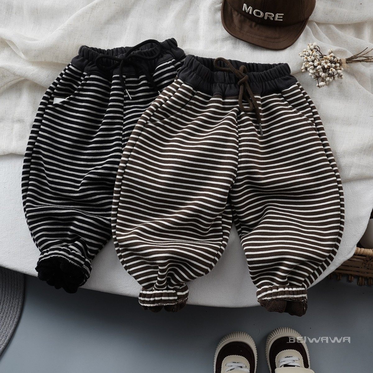 冬款儿童软糯加绒条纹松紧束脚裤 男女宝宝宽松洋气一体绒大pp裤