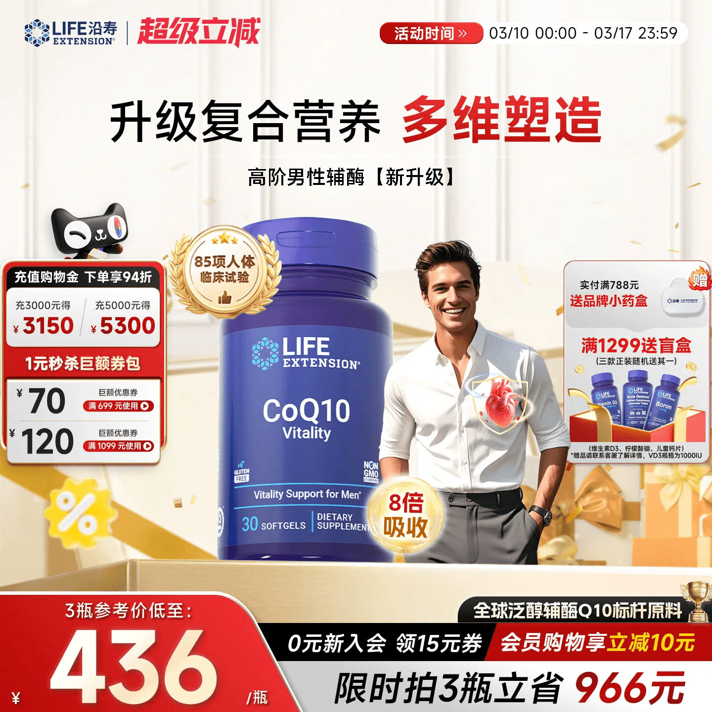 沿寿LIFE育源辅酶q10男性备孕还原型精质量活力锌硒宝片美国进口