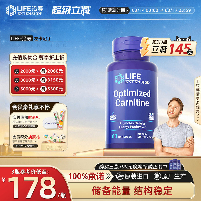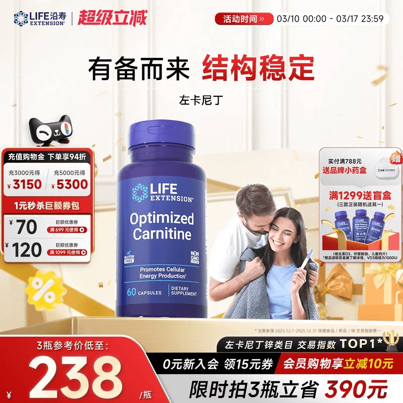 沿寿LIFE左卡尼丁男性辅酶备孕保健品质量活力补锌片zinc锌硒宝汀