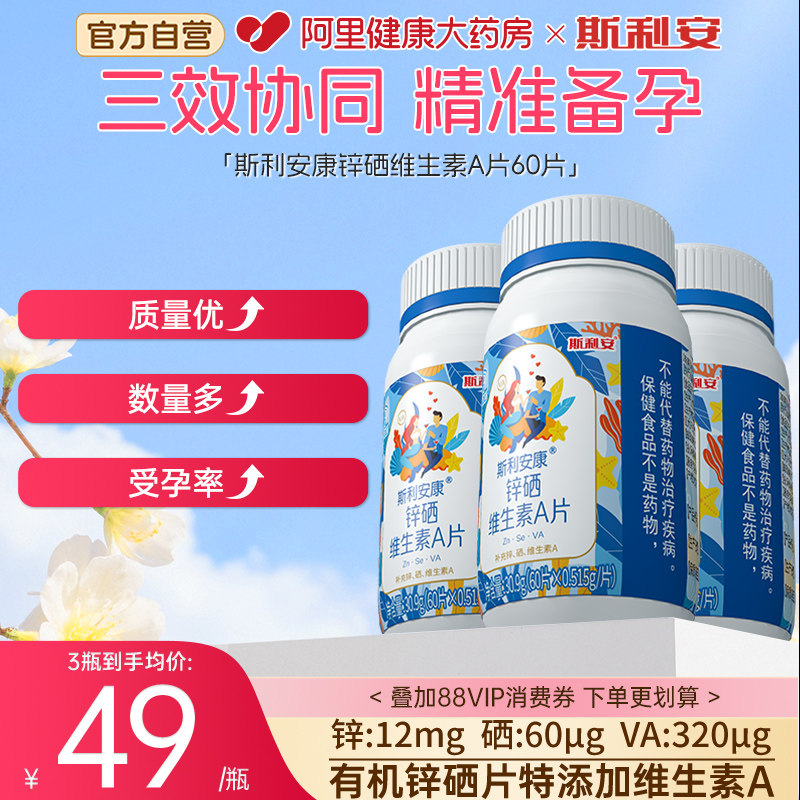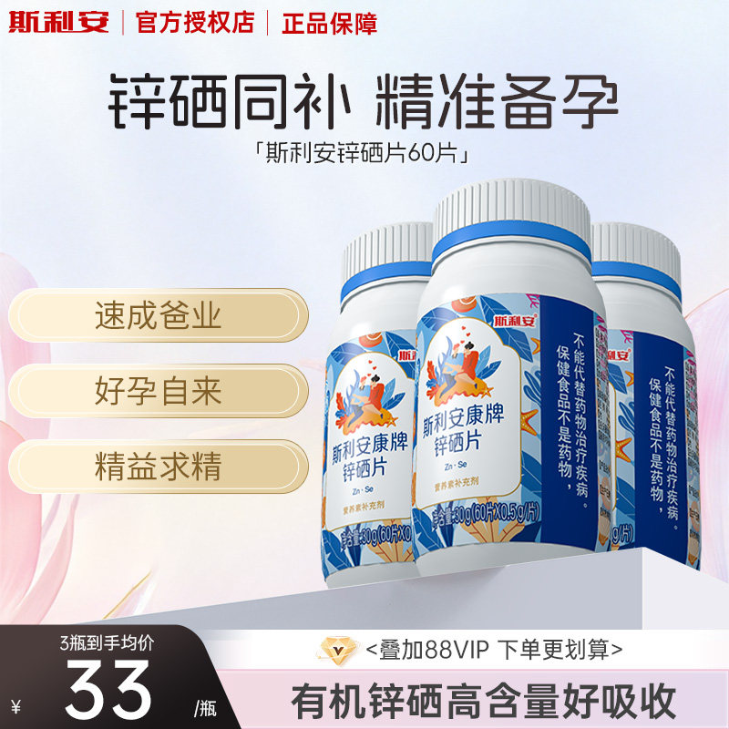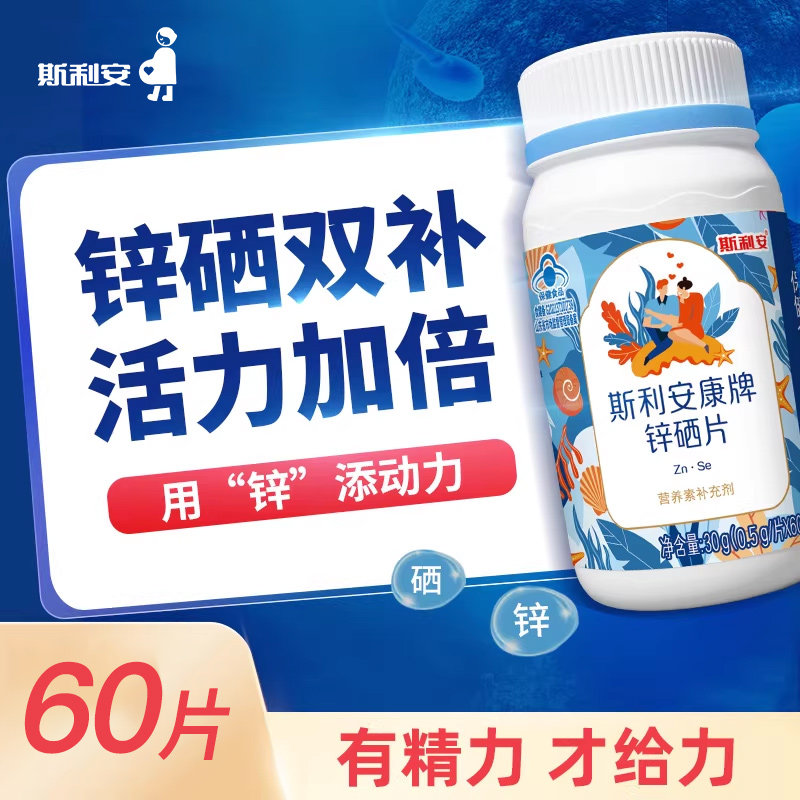 斯利安锌硒片男性备孕锌硒宝补锌育辛硒成人补硒男士精质量60片