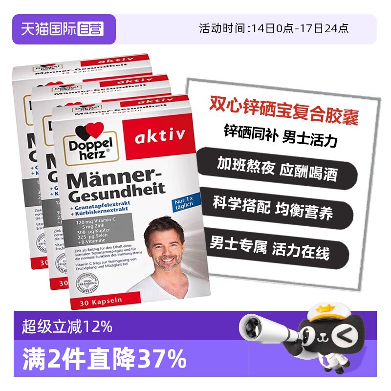 【自营】3盒德国双心男性锌硒宝片复合维生素南瓜籽石榴锌硒胶囊