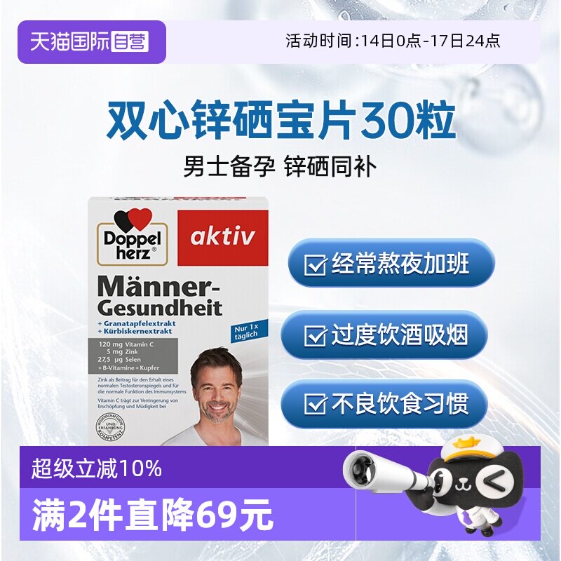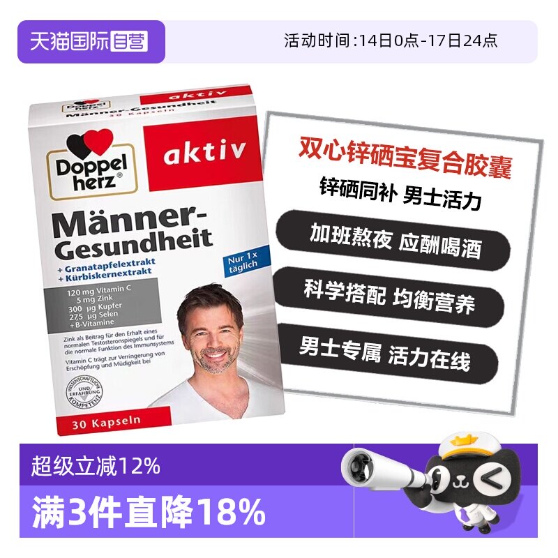【自营】德国双心男性锌硒宝片复合维生素南瓜籽石榴锌硒胶囊30粒