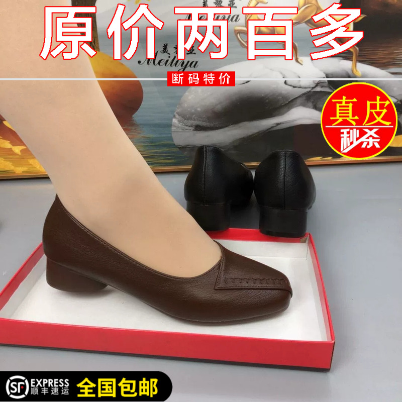 粗跟单鞋女新款真皮软底妈妈鞋中年女士皮鞋中跟防滑上班鞋工作鞋