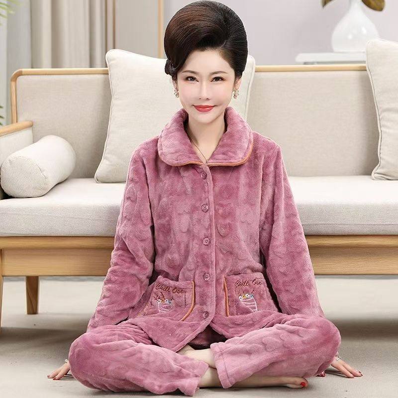 妈妈睡衣女秋冬款珊瑚绒加绒加厚中老年大码冬季可外穿家居服套装