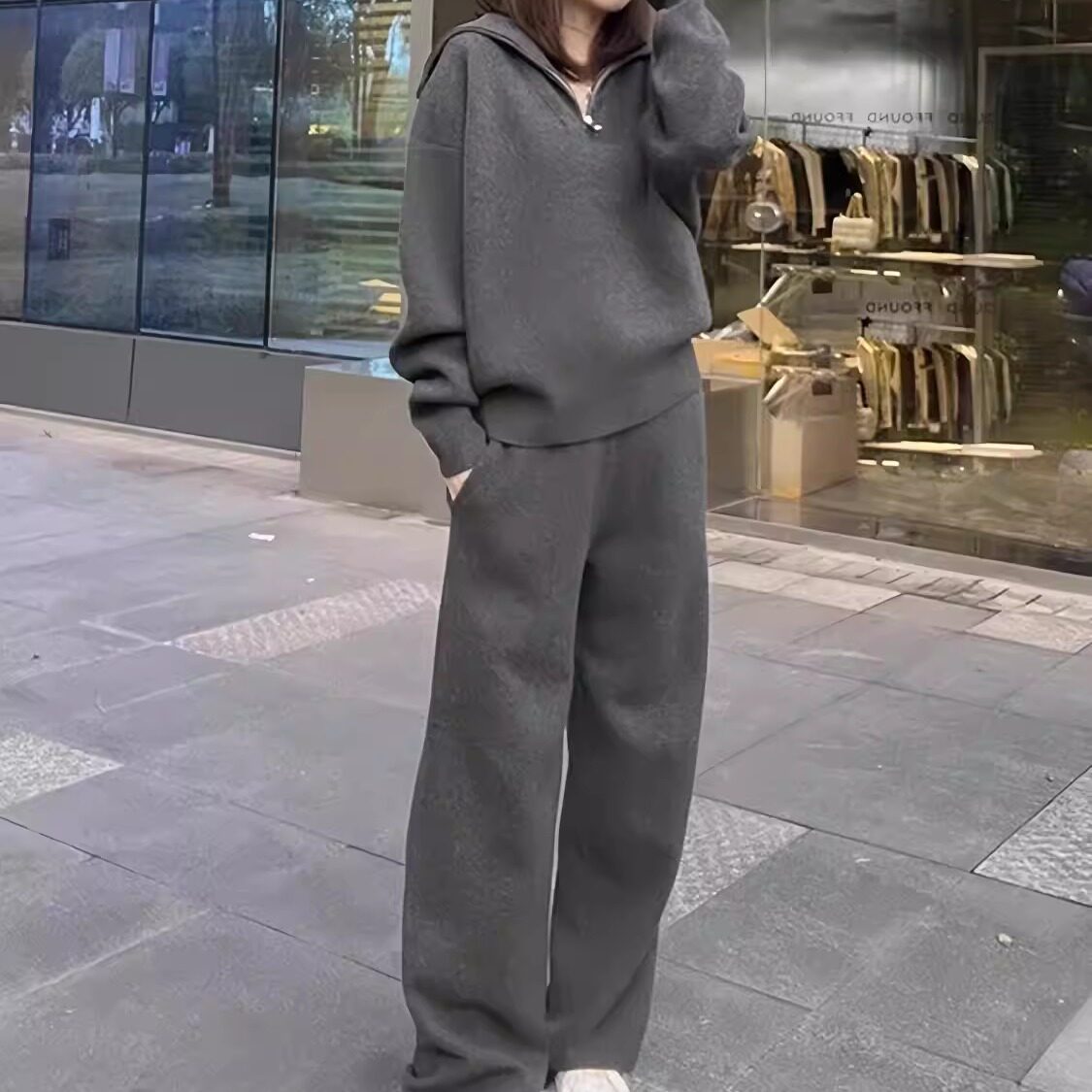 2025流行爆街款休闲针织套装大码女装春秋冬款时尚撞色内搭两件套