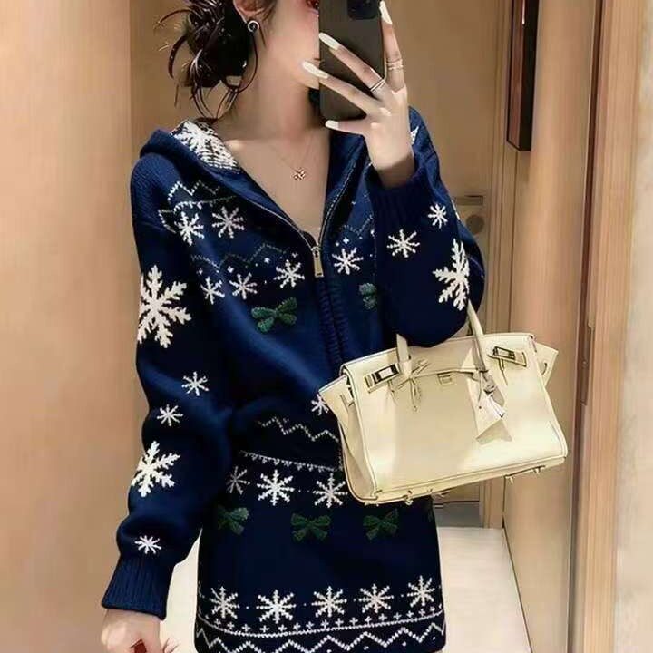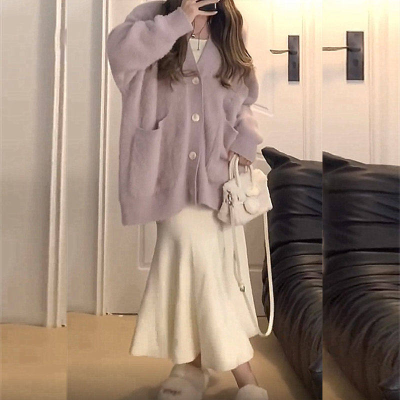 大码女装2025秋冬款盐系温柔风减龄针织毛衣气质鱼尾裙套装两件套