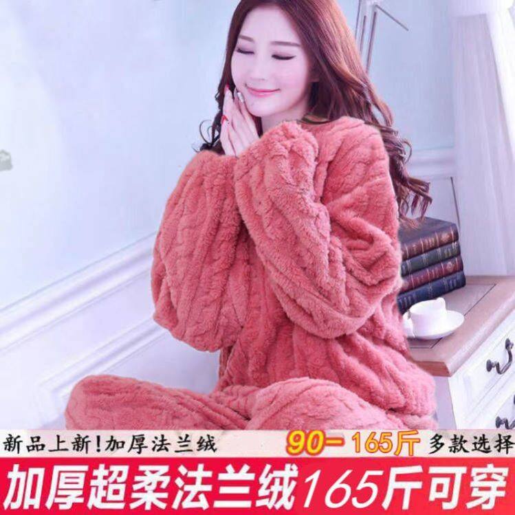 珊瑚绒睡衣女秋冬款加厚加绒大码女款保暖学生冬季法兰绒居服套装