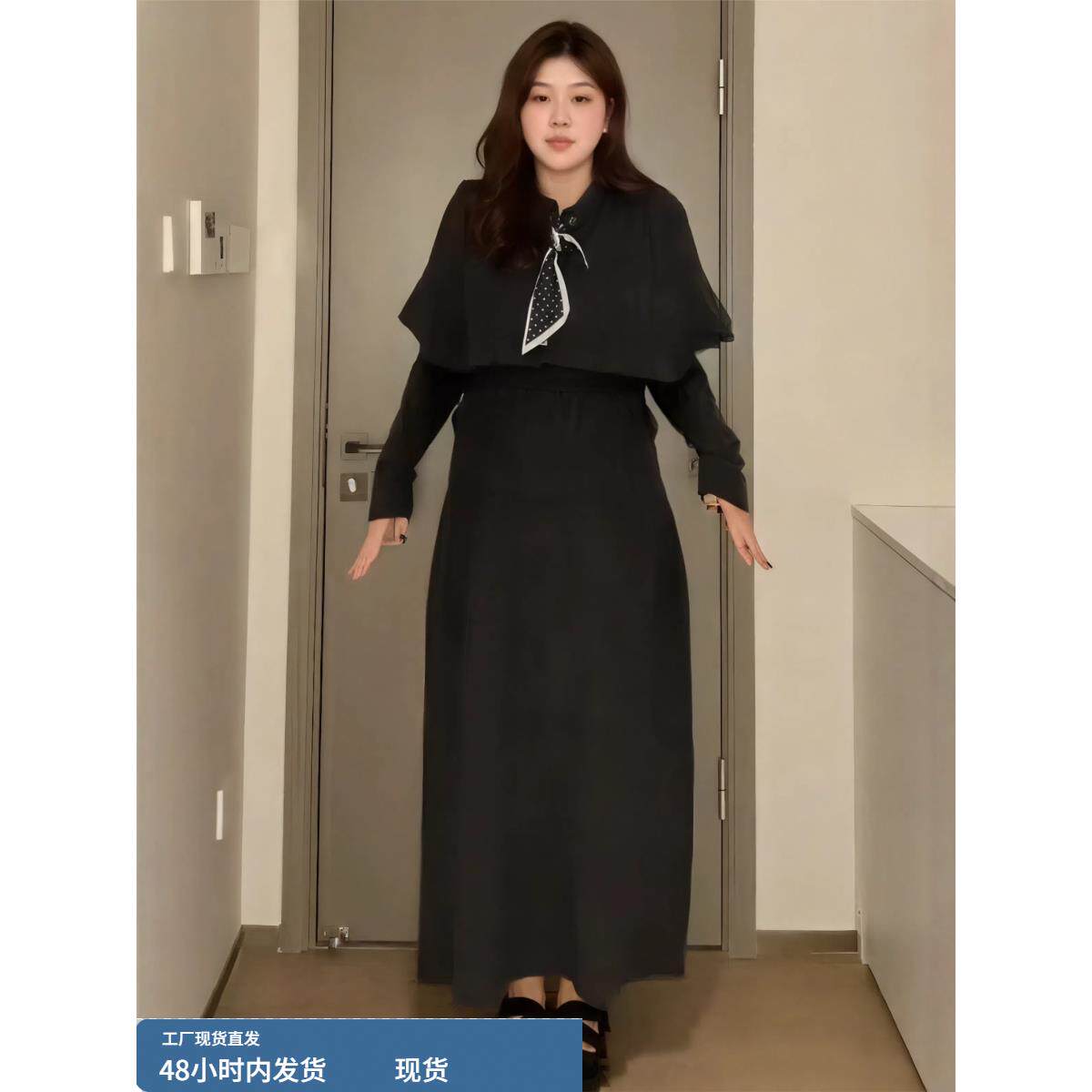 大码女装毛衣针织丝巾斗篷上衣2025秋冬款胖mm半身长裙设计感套装