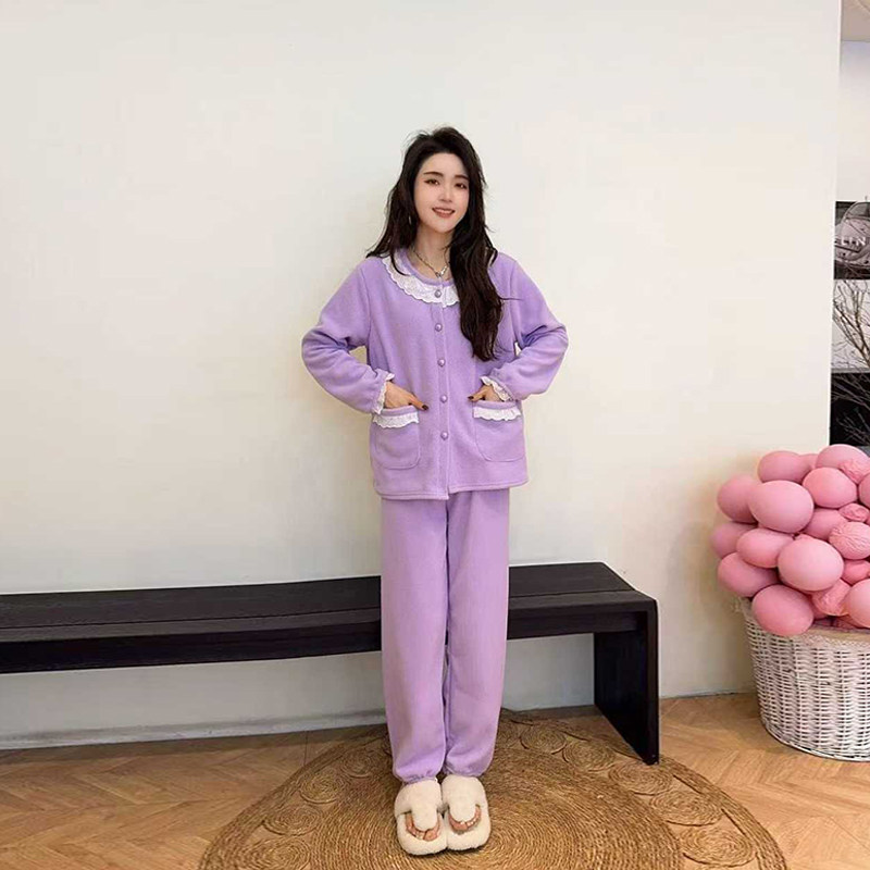 特价珊瑚绒睡裤女秋冬款女装加厚大码睡衣爆款家居服暖暖套装百搭